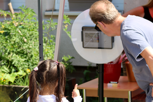 Was den Jungen und Mädchen am meisten Spaß macht, ist schwer zu sagen. Wer sie aber mit ihren bemalten Gesichtern vom Zuckerwattestand zur Hüpfburg und wieder zurück flitzen sieht, weiß, dass sie in diesen Stunden einfach nur glückliche Kinder sind. Obwohl, einen Höhepunkt gibt es doch: Als der Eiswagen auf den Platz einbiegt, formt sich rasend schnell eine große Traube aller Besucher:innen. Sie alle können es kaum abwarten, sich bei den hochsommerlichen Temperaturen mit einem kühlen Eis etwas abzukühlen.