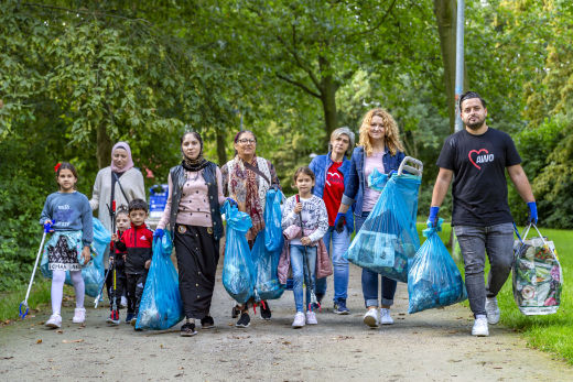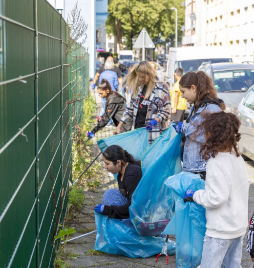 Geschäftsführerin Gudrun Wischnewski begrüßt die zahlreichen Teilnehmer:innen auf dem Hof der Paulstraße bei blauem Himmel mit einem strahlenden Lächeln: „Ich freue mich sehr, dass sich so viele Menschen hier gemeinsam für den Stadtteil engagieren.“ Gut 150 Menschen starten schließlich ausgestattet mit Zangen und Mülltüten – zur Verfügung gestellt von Gelsendienste – hoch motiviert an der AWO Paulstraße, von wo aus sie in die Straßenzüge des Stadtteils ausströmen. „Der Titel ist gleichzeitig auch das Programm: GEmeinsam engagieren wir uns – Alt und Jung, Alteingesessene und Neuzugezogene, Menschen mit und ohne Handicap“, betont AWO-Bereichsleiter Admir Bulic. „Wer motiviert ist, sich für seinen Stadtteil zu engagieren und dabei seine Nachbar:innen besser kennenlernen möchte, ist bei ,GEmeinsam für Bismarck‘ genau richtig.“